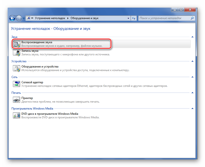 Можно воспользоваться очень удобным сервисом, который помогает последовательно найти и при возможности устранить неисправности в компьютере, в том числе и со звуком. Мастер устранения неполадок прост в работе и интуитивно понятен для всех категорий юзеров.