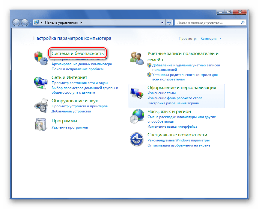 - Щёлкаем на главную кнопку «Пуск» и отправляемся в Панель управления, а затем переходим в «Система и безопасность».
