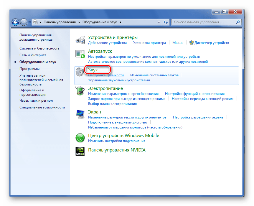Открываем «Звук» для проверки правильной работы соответствующих устройств воспроизведения и записи звука.