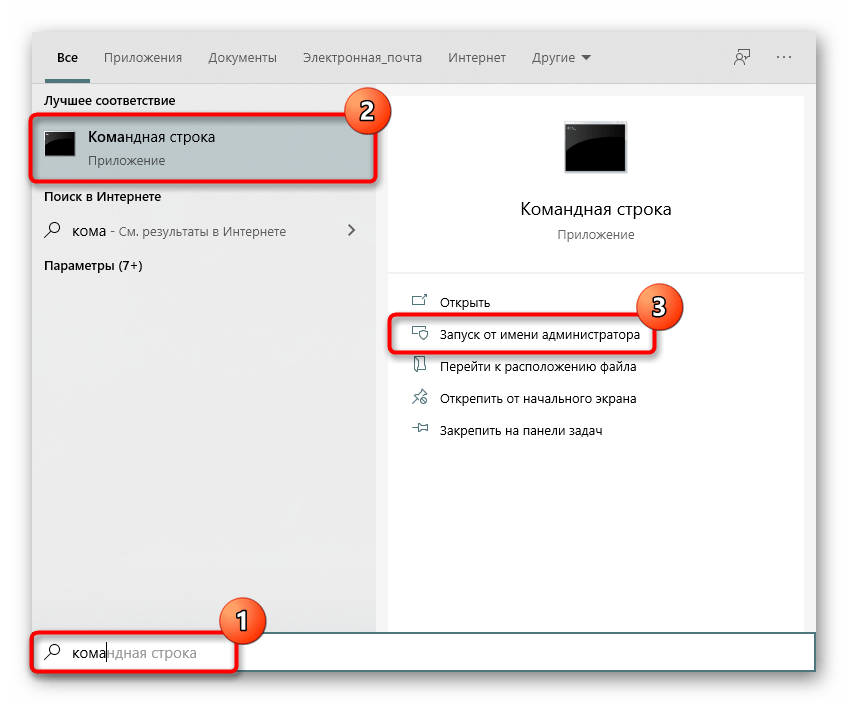 Иногда обычного скачивания и перемещения ДЛЛ оказывается недостаточно, и требуется произвести его регистрацию. Для этого через «Пуск» найдите и откройте приложение «Командная строка», запустив его от имени администратора.