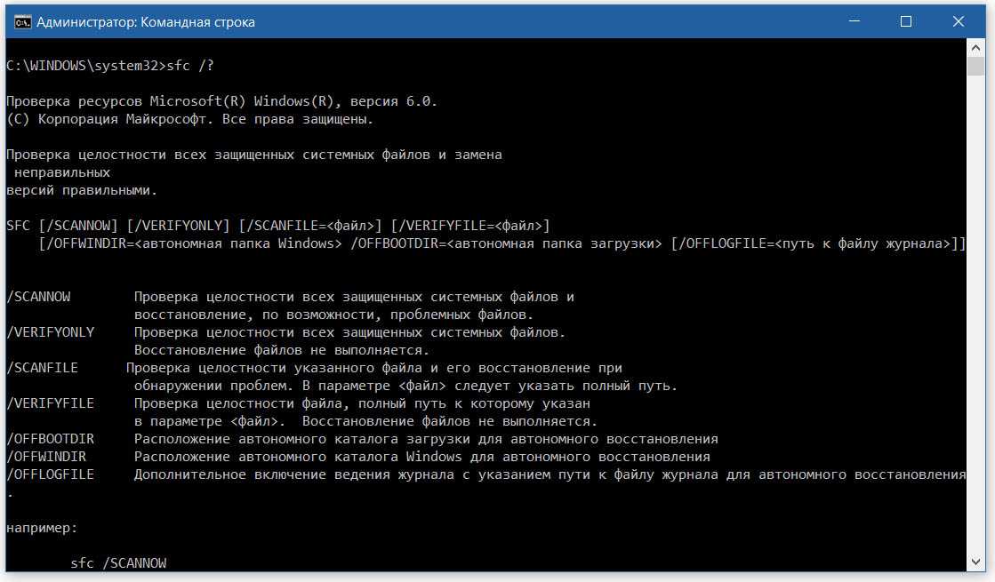 восстановление, по возможности, проблемных файлов. - /? Краткая справка.