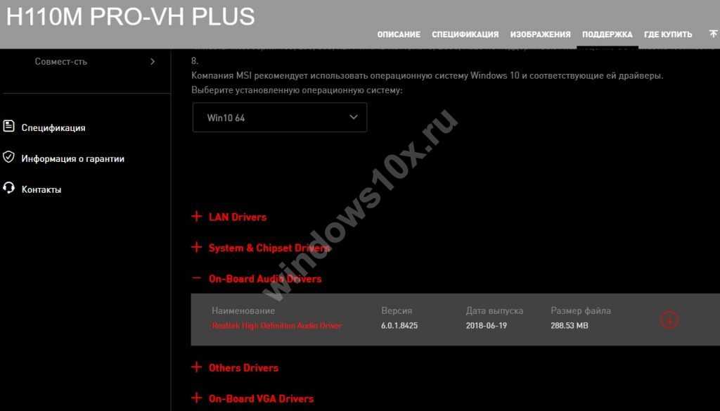 Если по-прежнему вылетает ошибка, что для девайса невозможен запуск с кодом 10, то устанавливайте вручную. Перед этим необходимо скачать драйвера с сайта-производителя. Когда проблема с контроллером high definition audio Windows 10 (аудио драйвер) — качайте официального ресурса разработчика материнки, как как звуковая плата встроена в нее.