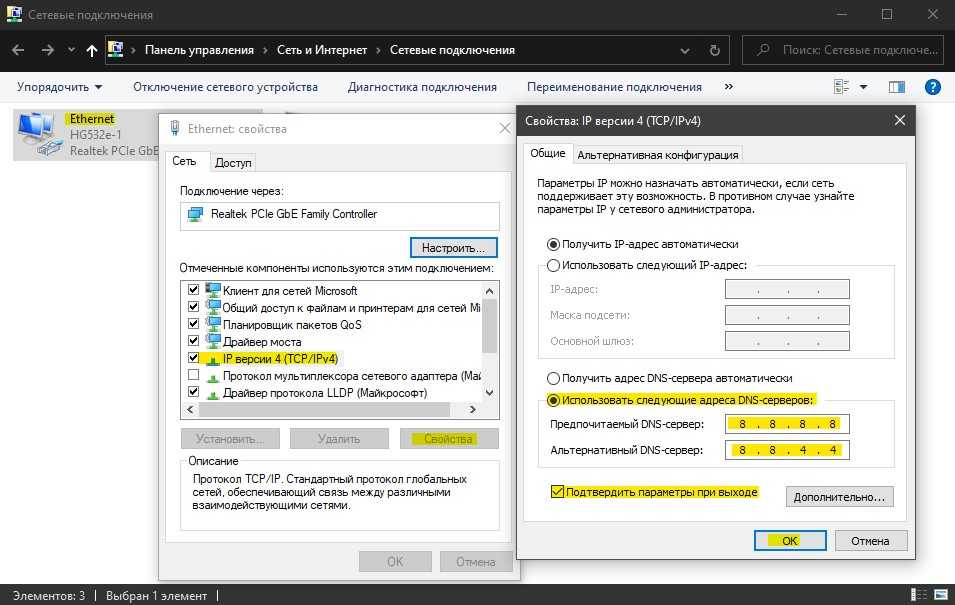 Настройка IP и DNS адресов в Windows 10 при проблемах с интернетом