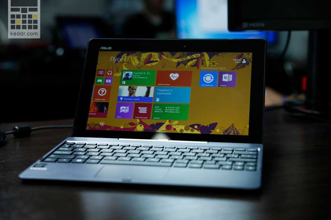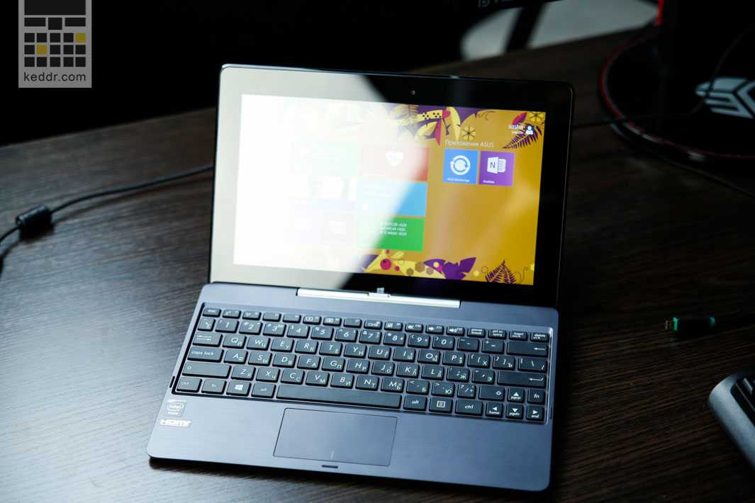 На 10,1″ разместилось разрешение 1366 х 768 точек, то есть HD по-виндаввски. На сегодняшний день около 90% продаваемых в Украине 15,6″ ноутбуков имеют именно такое разрешение. А 14″ ноутбук с FullHD-экраном имеет такую же плотность пикселей на дюйм, как и Transformer Book T100 на своем 10,1″ дисплее — 155 ppi. Планшеты с такой диагональю и разрешением FullHD есть, но и на стоимость это влияет. Матрица — IPS, качество очень хорошее, дисплей приятен. Конечно же, он сенсорный. Максимальная яркость у экрана — 400 нит. Этого более чем достаточно, ведь перед нами не смартфон, а устройство, которое чаще будет использоваться в помещении.