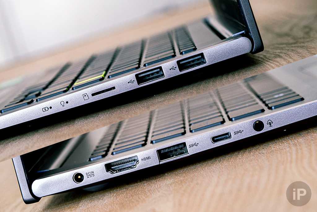 Подключить сюда можете почти все актуальные коннекторы: тут и HDMI, и USB‑A, и USB‑C, и аудиоджек.