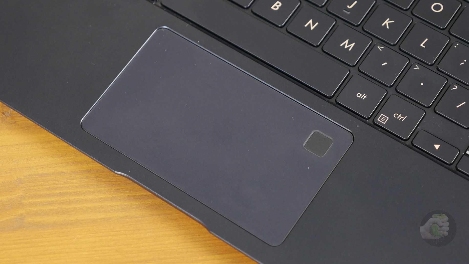 В правом верхнем углу тачпада расположен сканер отпечатков пальцев. Ничего сказать про него не смогу, поскольку на моём сэмпле он не работал.