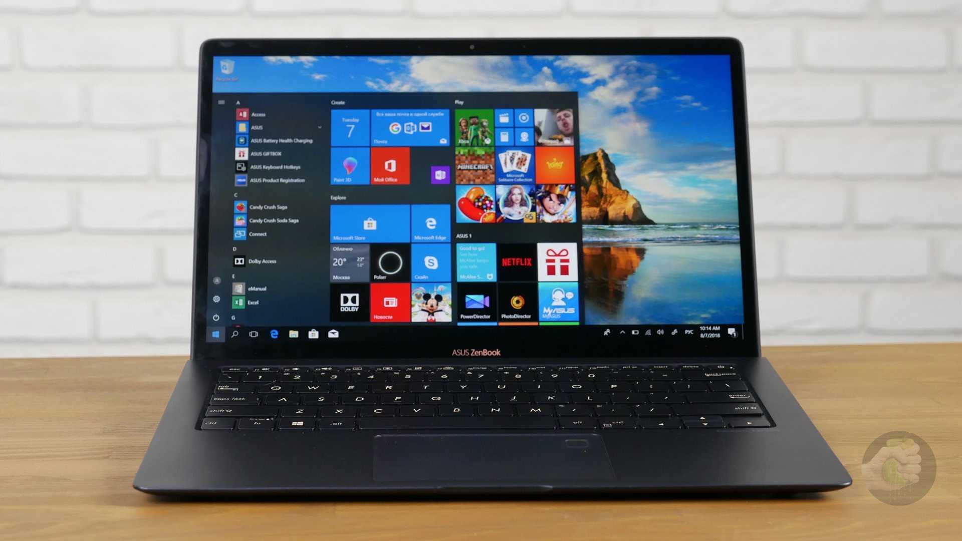 ASUS Zenbook S поставляется с двумя типами экранов: с разрешением 4K и с FullHD-экраном. Это будет очень хорошая IPS-матрица с высоким запасом яркости. В первом случае дисплей будет сенсорным. В этом есть определённое удобство. Например, можно тыкать в экран пальцем, чтобы выбрать нужную вкладку, либо пролистывать длинные тексты и страницы сайтов. Других сценариев для использования сенсорного экрана я не нашёл — ну не предназначена Windows 10 для тыканий в неё пальцами.