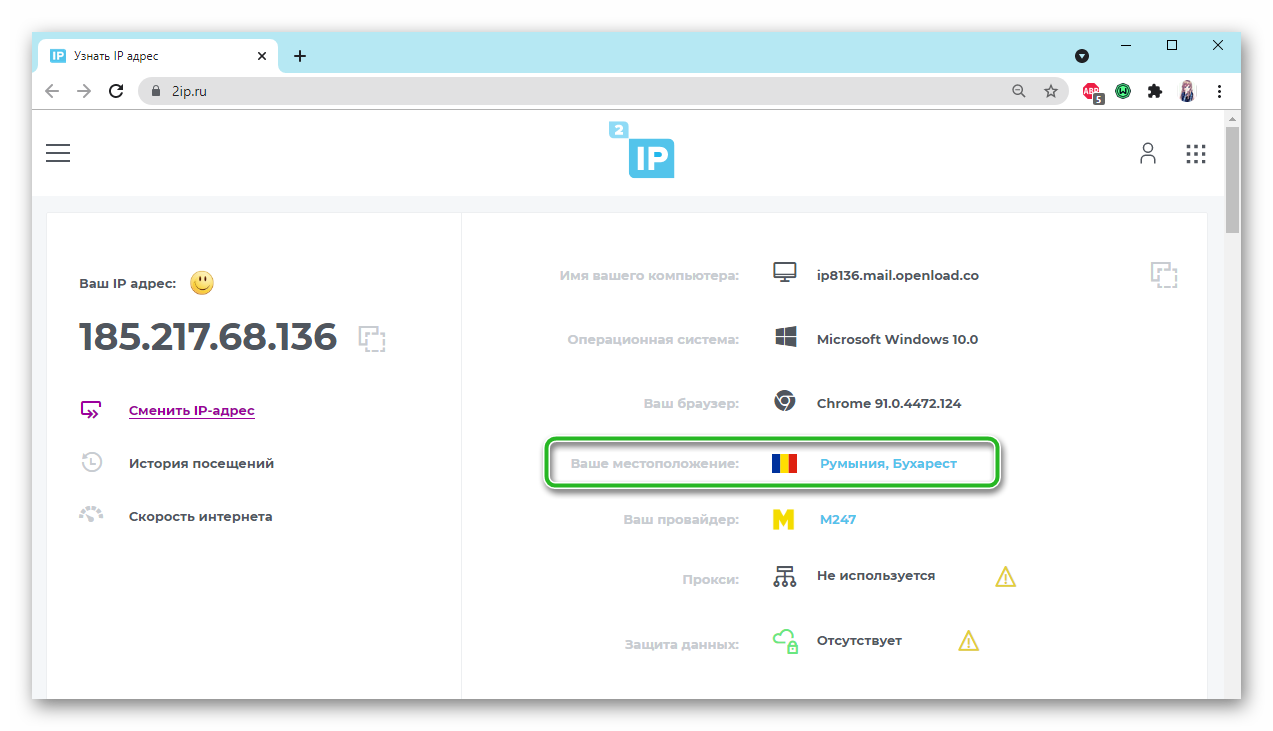 По умолчанию расширение подключается к самому быстрому из серверов. В нашем случае, это Румыния.
