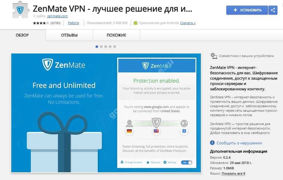 . Нужную версию для вашего браузера можно найти прямо на их сайте Zenmate. Скачайте и установите расширение. Все просто.