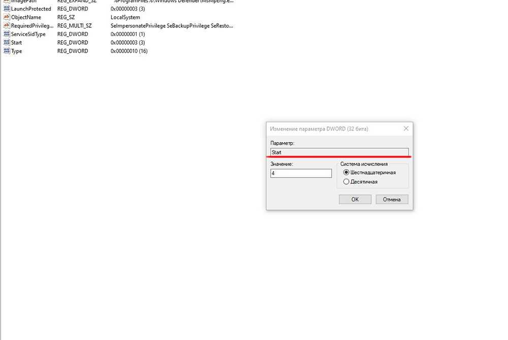 Найдите параметр Start, откройте его и впишите цифру «4» в новом окне.