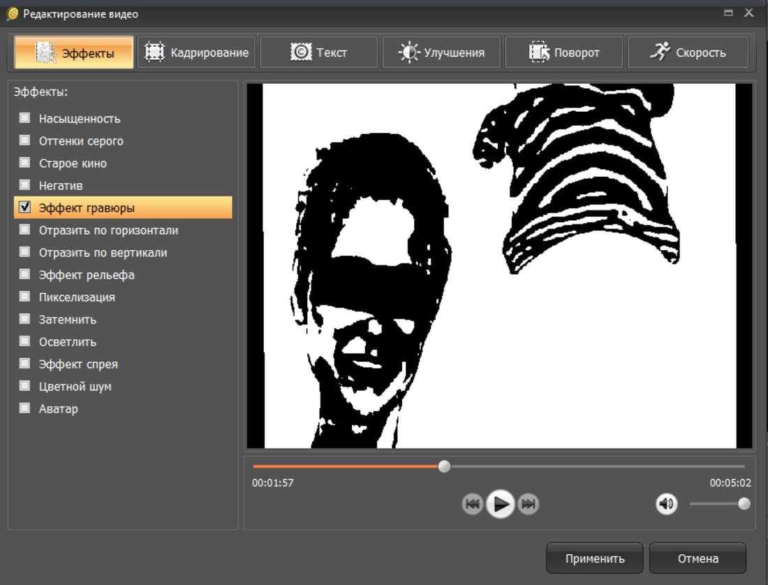 горизонтальной или вертикальной оси. В плеере вы увидите конечный результат.