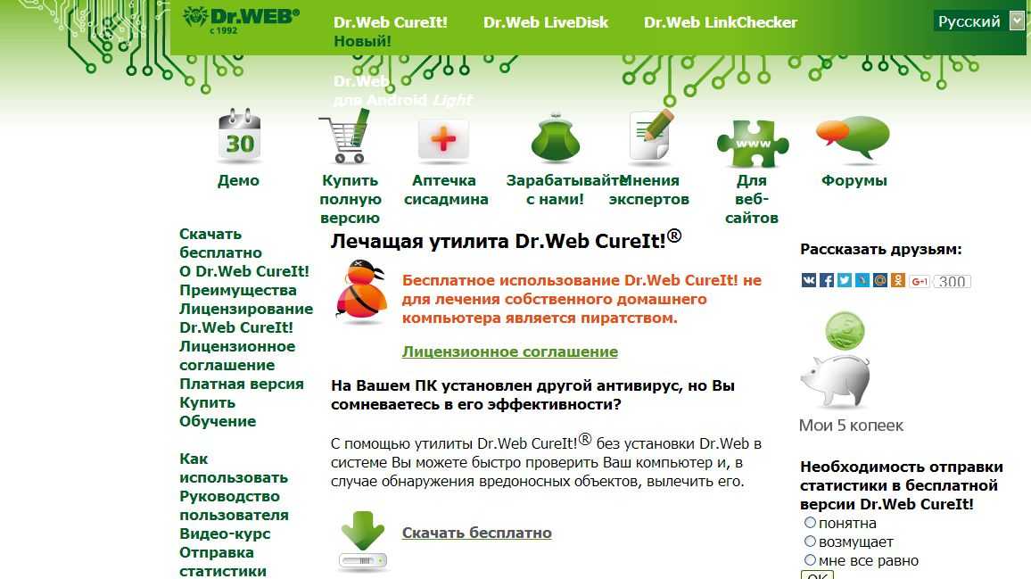 - На помощь может прийти ещё такое программное обеспечение, как AVPTool от Касперского или CureIT от Dr.Web.