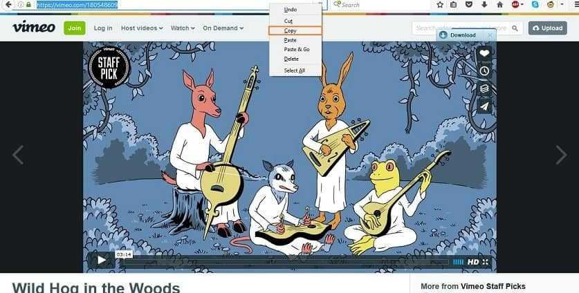 2. Теперь перейдите к видео Vimeo (). И затем просто нажмите на закладку. 3. Ваша прямая ссылка для загрузки видео появится на экране браузера и затем просто скопировать и вставить URL в адресную строку браузера и нажмите enter. 4. И, видео будет начать играть и затем просто щелкните правой кнопкой мыши на видео и выберите «Сохранить как видео». Ну вот.