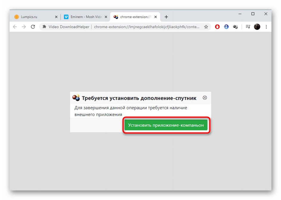 Video DownloadHelper предложит установить приложение-компаньон, чтобы перейти к загрузке видео через эту программу. Если вы желаете сделать это, просто следуйте отобразившимся на экране инструкциям.