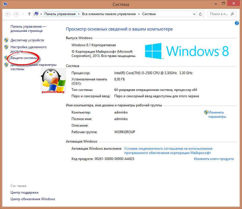 Однако не стоит спешить и сразу же удалять отсюда все данные, это может привести к некоторым сбоям и нестабильной работе. Ее можно разгрузить при помощи встроенных средств. Для начала, можно кликнуть по Компьютеру правой кнопкой мыши и открыть его свойства. Здесь следует открыть вкладку защиты системы.