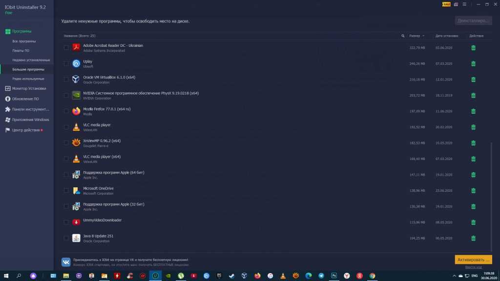 Один из лучших деинсталляторов — iObit Uninstaller Free. Он быстро сканирует систему на наличие установленных программ и позволяет удалять ненужное ПО, включая расширения для браузеров, в пакетном режиме. Программа бесплатная, но периодически показывает рекламу.