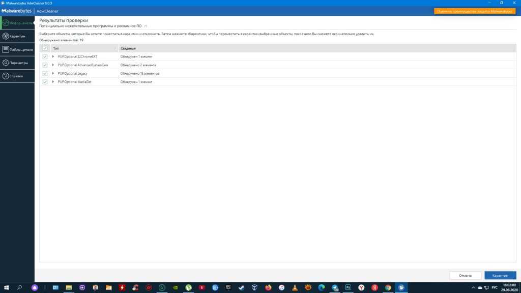 Средство очистки рекламного ПО: Malwarebytes AdwCleaner