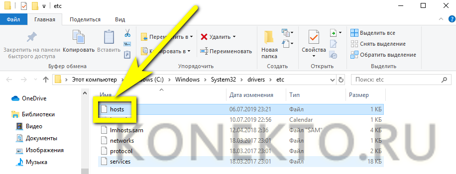 В появившейся на экране папке найти файл hosts (он будет без расширения) и дважды кликнуть по нему левой клавишей мыши.