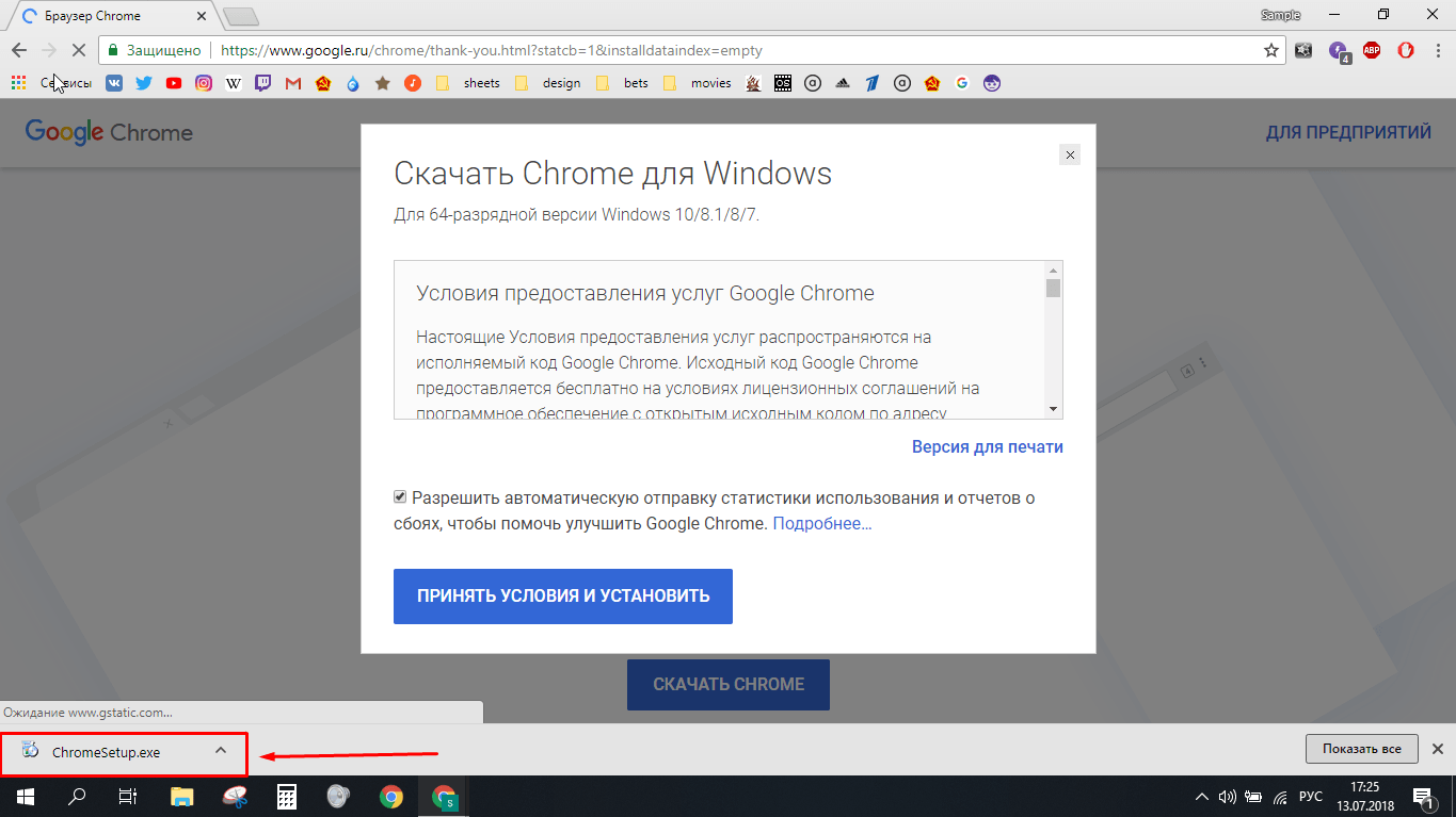 Шаг 3. Перейти по адресу: https://www.google.ru/chrome/ и нажать «Скачать…».