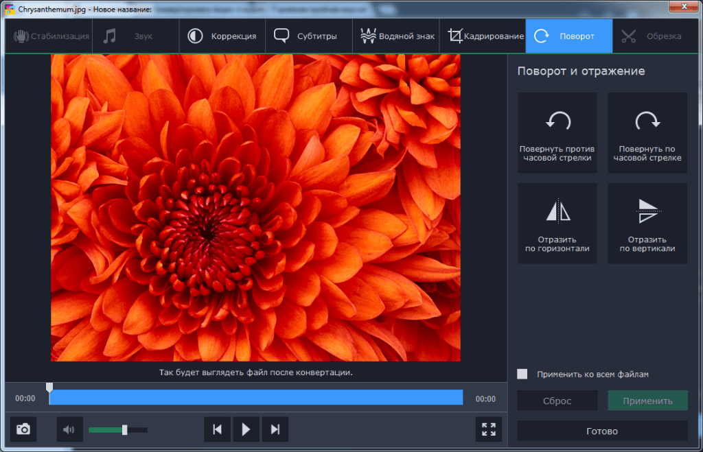 При необходимости вы можете отредактировать файл. Изменить разрешение, обрезать, повернуть и т.д.