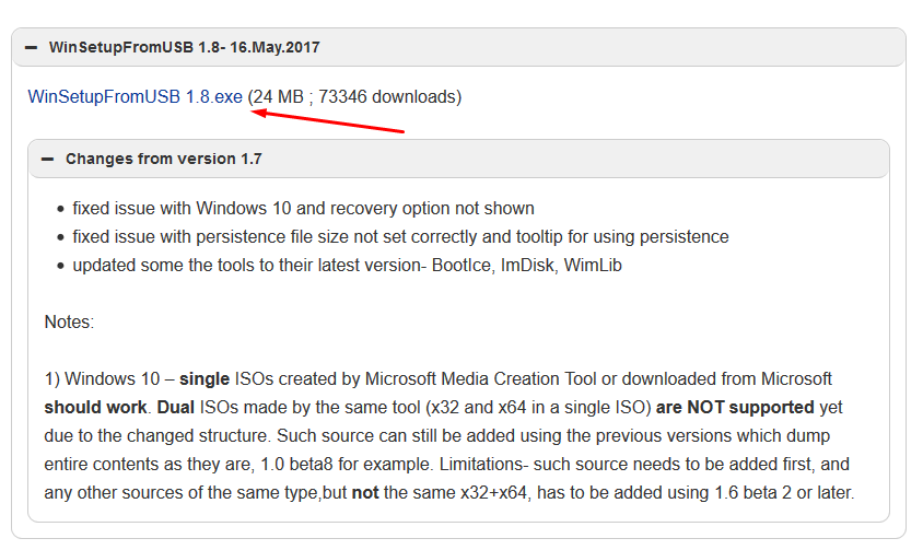 - Скачайте последнюю версию программы с официального сайта разработчика: http://www.winsetupfromusb.com/downloads/.